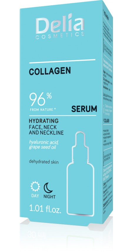 The serum is an intensely cocentrated preparation with a higher concentration of active ingredients than in an avereage cream. Serum with collagen intensively moisturizes, improves skin elasticity, reduces the visibility of wrinkles and reduces signs of fatigue.